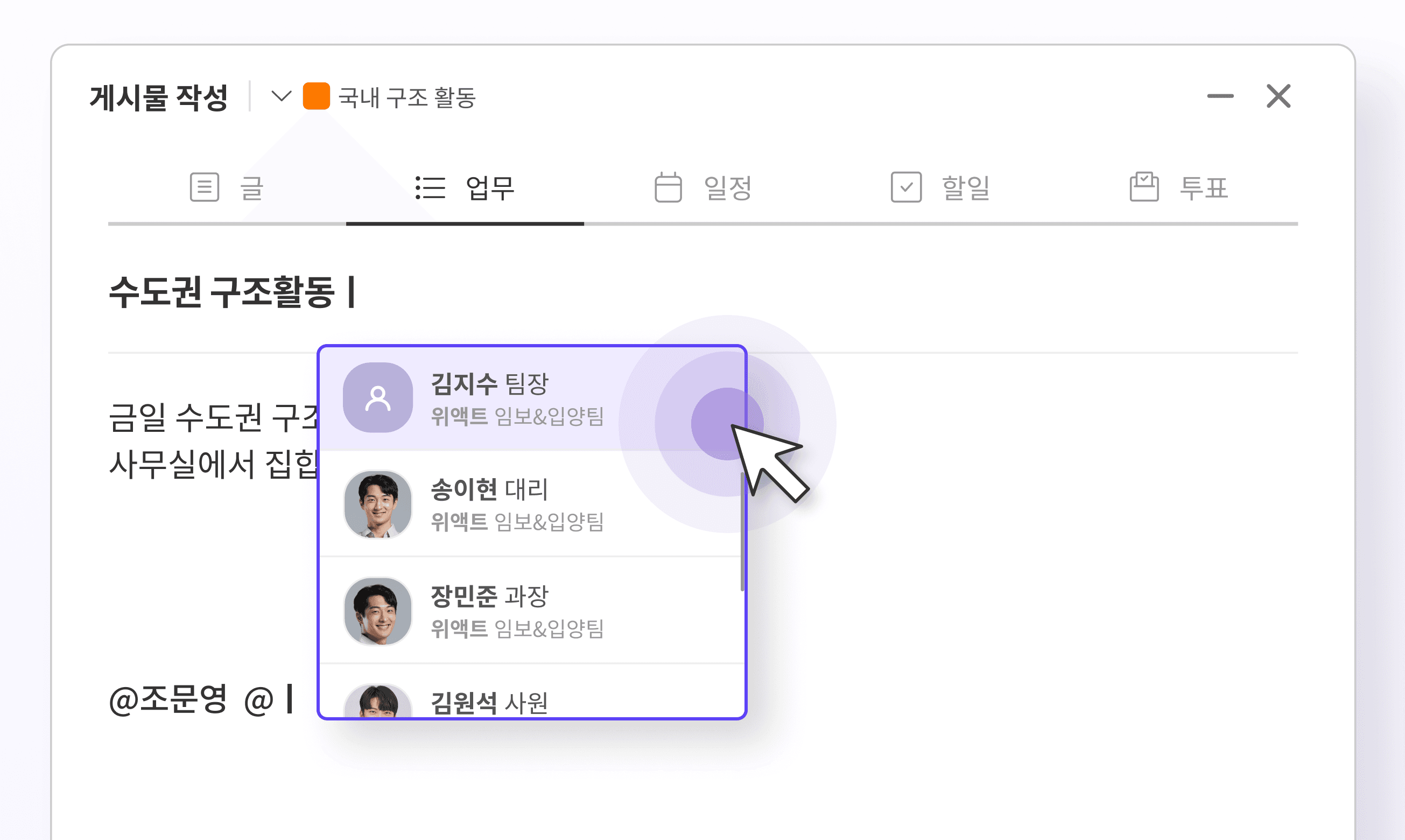 ํด์ ๊ฒํ ํ์ง๋ง, ํ๊ตญ์ ์กฐ์ง ๊ตฌ์กฐ์ ์ค๋ฌด ํ๋ฆ์ ์์ฐ์ค๋ฝ๊ฒ ๋ง๋ ํ๋ก์ฐ๊ฐ ๊ฐ์ฅ ์ ํฉํ์ต๋๋ค.