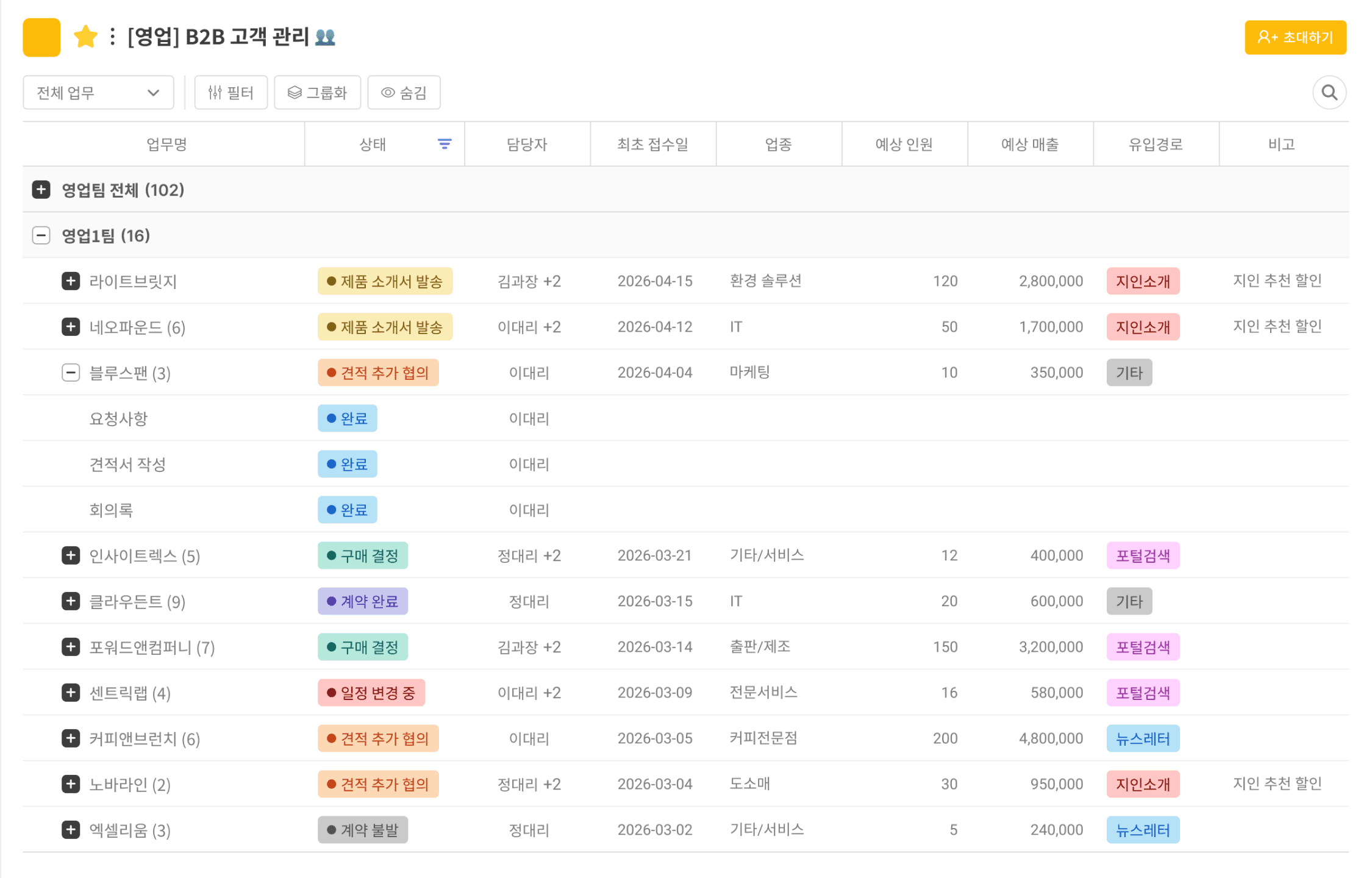 ํ์ดํ๋ผ์ธ์ ๊ด๋ฆฌํ๋ CRM์ฒ๋ผ ์ฐ๊ณ , ๋ ์ด๋ค ๊ณณ์์๋ ์ง์ ยท๋งค์ฅ ์ด์ ํํฉํ์ฒ๋ผ ์ฐ๊ณ ์์ฃ .