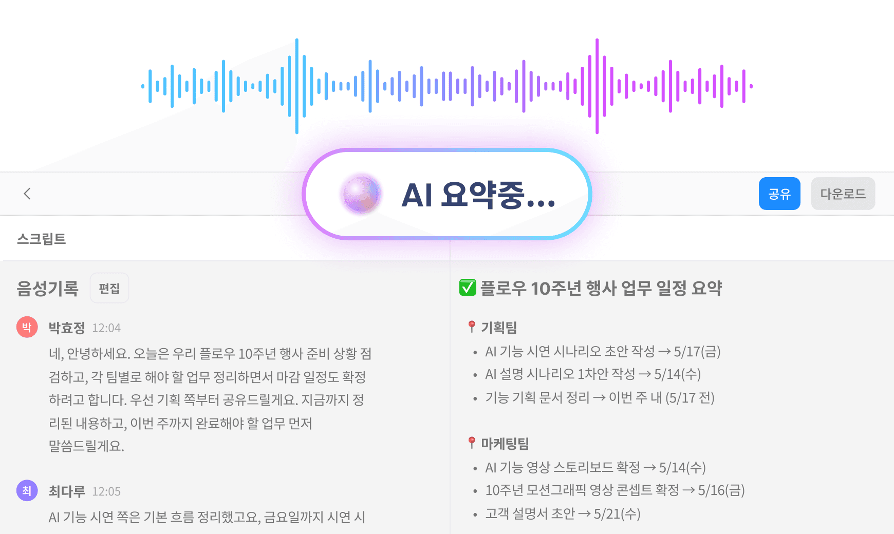 ํด ํ๋ก์ฐ, ํ์ ์์ฝ, AI ์์ฝ, ํ์ ๋ฉ๋ชจ, ๋ฏธํ