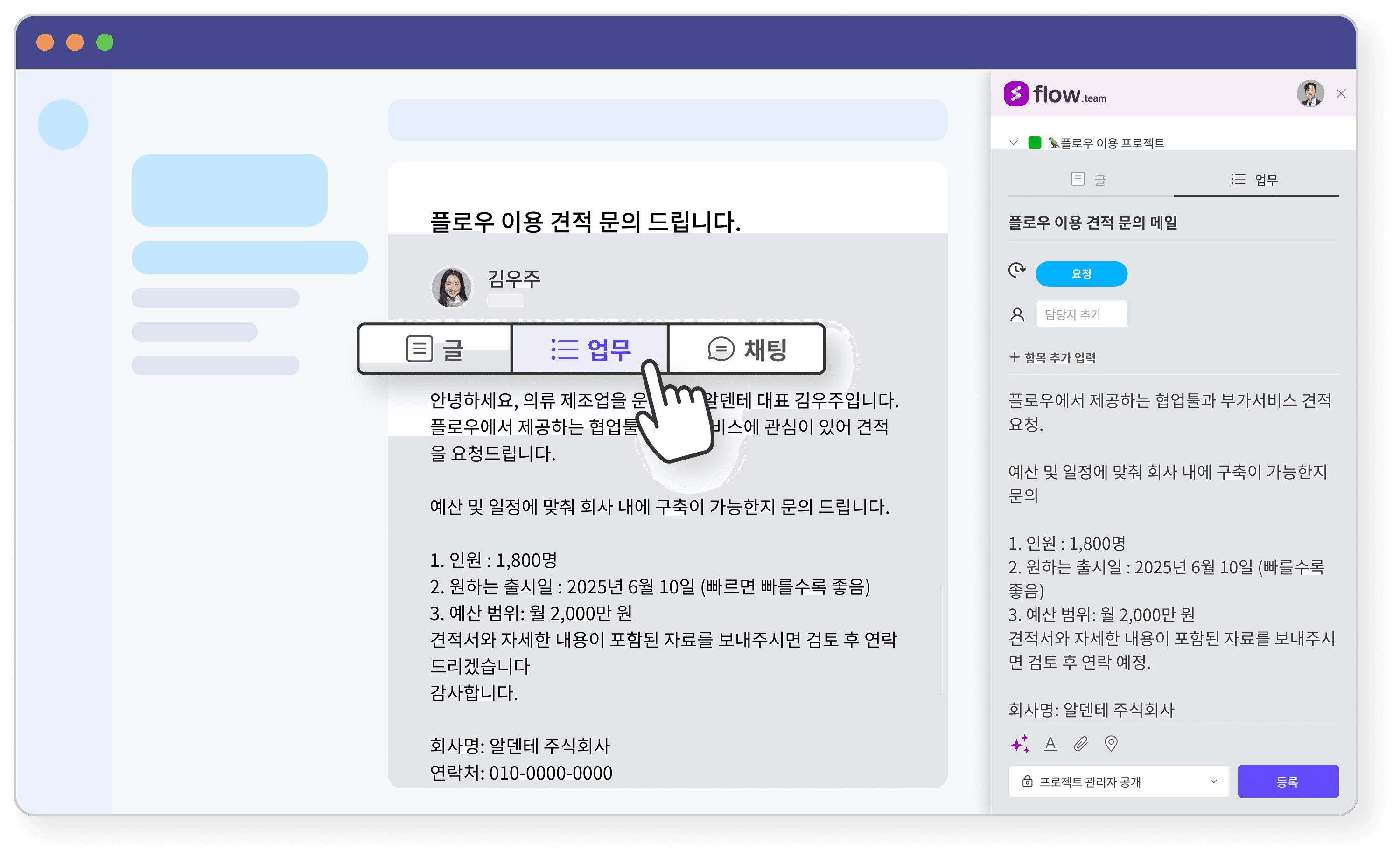 ์ ๋ฌด ๋ฉ์ผ ํ๋๋ฅผ ๋ฐ์ผ๋ฉด ํ์๋ค์๊ฒ ๊ณต์ ํ๊ฑฐ๋, ์ดํ ํ์คํ ๋ฆฌ๋ฅผ ๋จ๊ธฐ๊ธฐ ์ํด ๋ค์ ํ๋ก์ฐ์ ์ฎ๊ฒจ ์ ์ด์ผ ํ๋ ๊ฒฝ์ฐ๊ฐ ๋ง์์ต๋๋ค. ๋ฉ์ผ ๋ด์ฉ์ ๋ณต์ฌํด ๋ถ์ฌ ๋ฃ๊ณ , ์ฒจ๋ถ ํ์ผ์ ๋ค์ ์ฌ๋ฆฌ๋ ๊ณผ์ ๋ ๋ฒ๊ฑฐ๋ก์ ์ฃ .