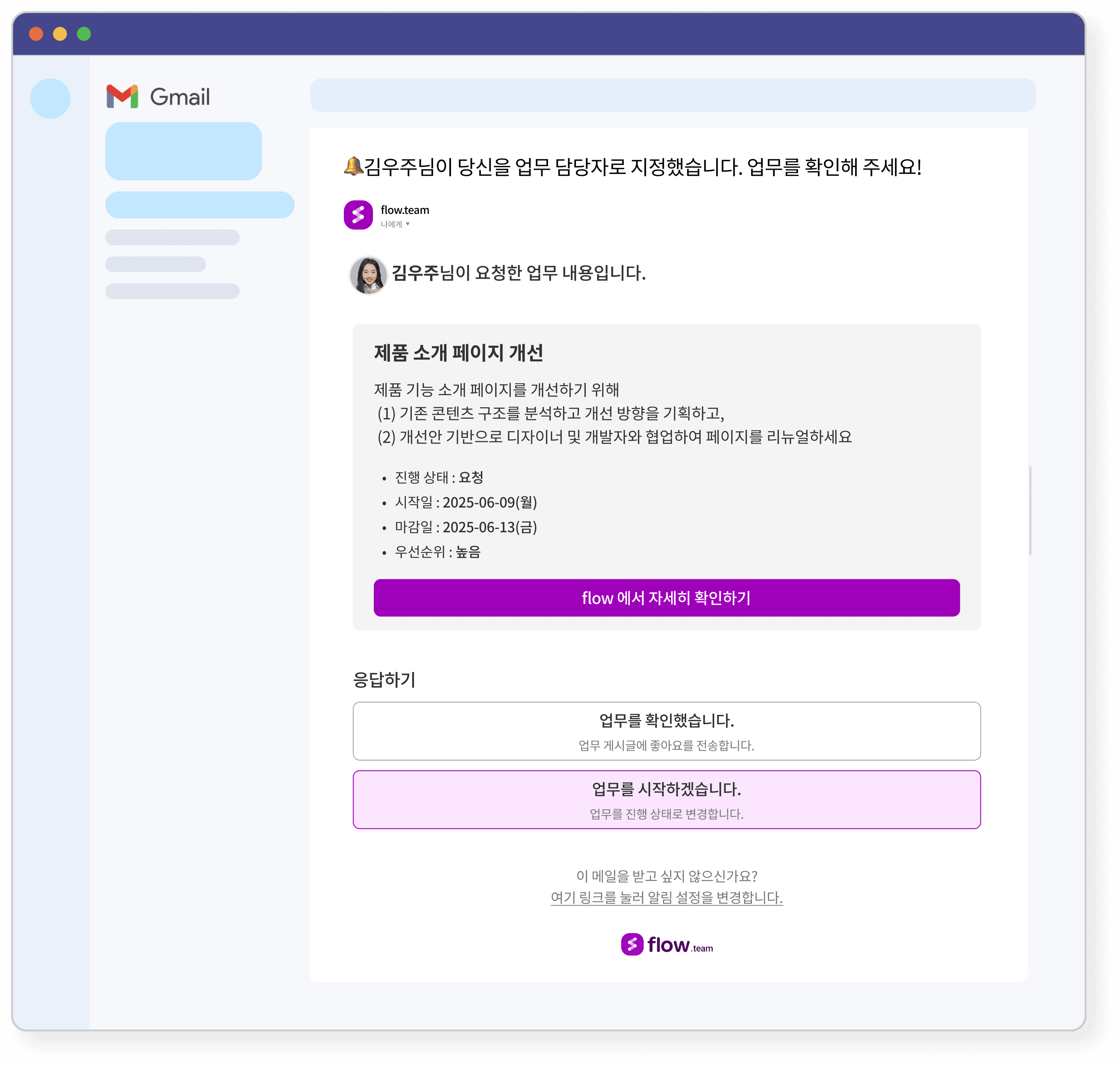 ํ๋ก์ฐ์ ์ ๋ฌด๊ฐ ๋ฑ๋ก๋ผ๋ ์ ์ํ์ง ์์ผ๋ฉด ์๋ฆผ์ ๋์น๊ธฐ ์ฌ์ ๋ ๊ฒฝํ ์์ผ์ จ์ฃ . ์ด์ ํ๋ก์ฐ์ ์ ๋ฌด๊ฐ ๋ฑ๋ก๋๋ฉด Gmail๋ก ์๋ฆผ์ ๋ฐ๊ณ , ๋ฉ์ผ ์์์ ๋ฐ๋ก ์ ๋ฌด ์ํ๋ฅผ ๋ณ๊ฒฝํ ์ ์์ต๋๋ค.