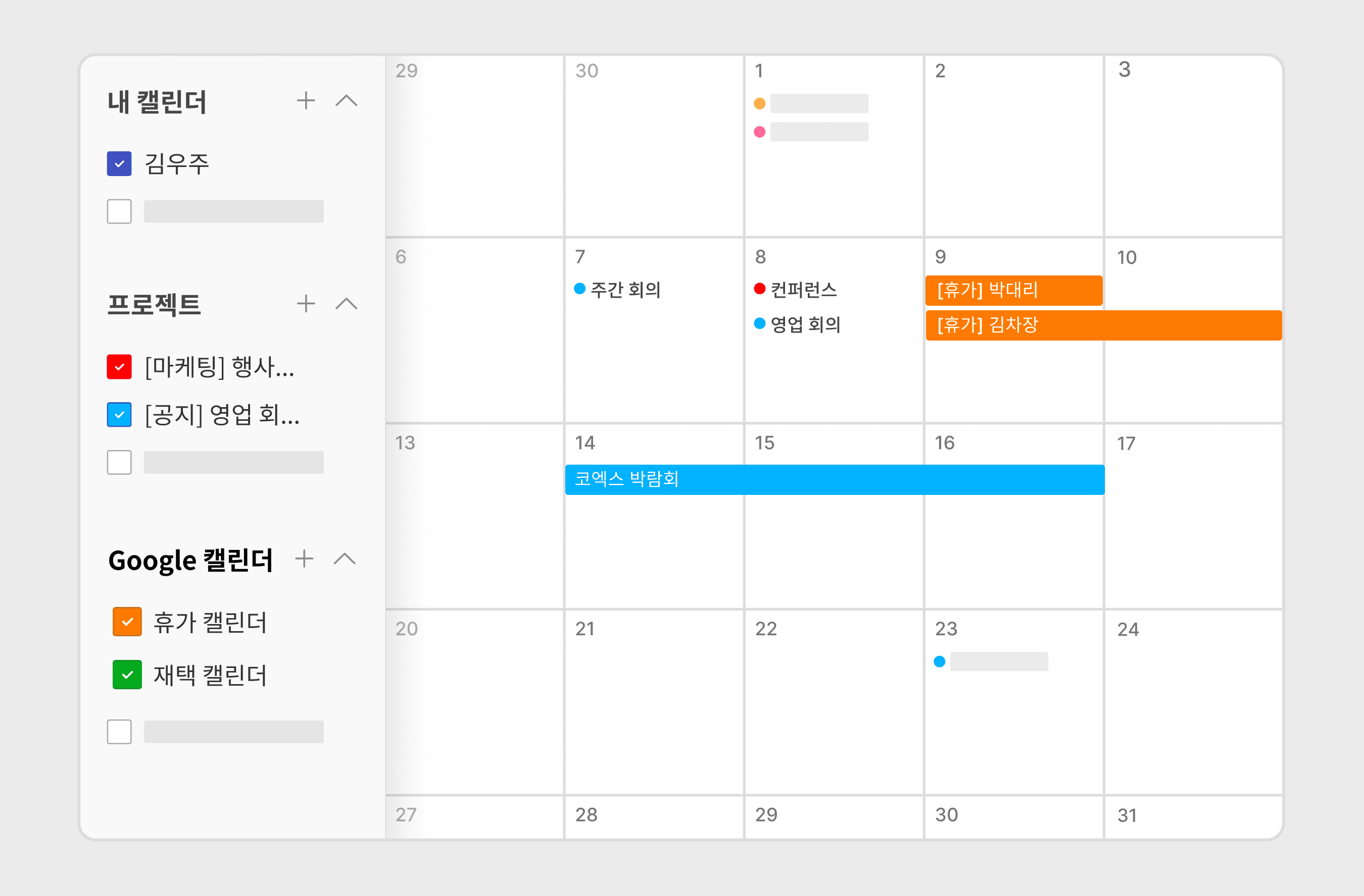 ๊ตฌ๊ธ ์บ๋ฆฐ๋์ ๋ฑ๋ก๋ ์ผ์ ๋ ํ๋ก์ฐ์์ ํจ๊ป ํ์ธํ ์ ์์ต๋๋ค. ์ด์ ์๋ ํ๋ก์ฐ์์ ๋ฑ๋กํ ์ผ์ ๋ง ๊ตฌ๊ธ ์บ๋ฆฐ๋์ ๋ฐ์๋๋ ๋จ๋ฐฉํฅ ์ฐ๋์ด์๋ค๋ฉด, ์ด์ ๋ ์ด๋ ์ชฝ์์ ์ผ์ ์ ์ถ๊ฐํ๊ฑฐ๋ ์์ ํ๋๋ผ๋ ์๋ก ๋์ผํ๊ฒ ๋ฐ์๋ฉ๋๋ค.