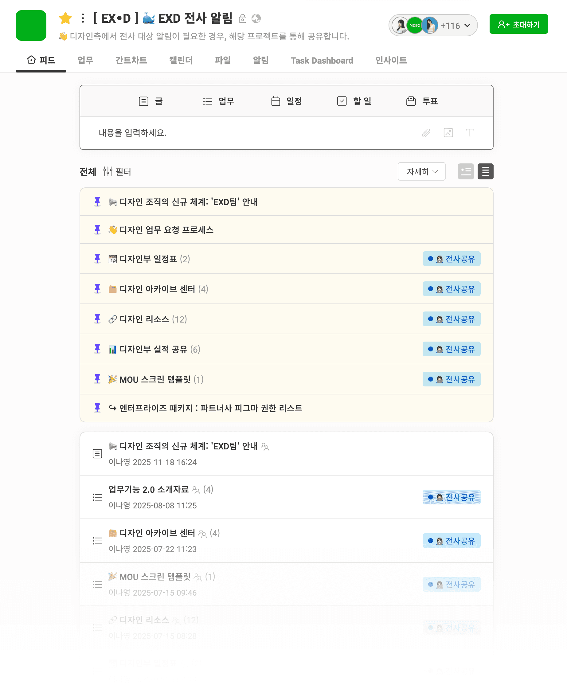 ๋๋ถ์ ์ ์ฒด ์ง์๋ค์ ํ๋ก์ ํธ๋ง ์ด์ด๋ ์ง๊ธ ์ด๋ค ๊ณต์ง๊ฐ ์ ํจํ์ง ์ง๊ด์ ์ผ๋ก ํ์ธํ ์ ์์์ต๋๋ค.