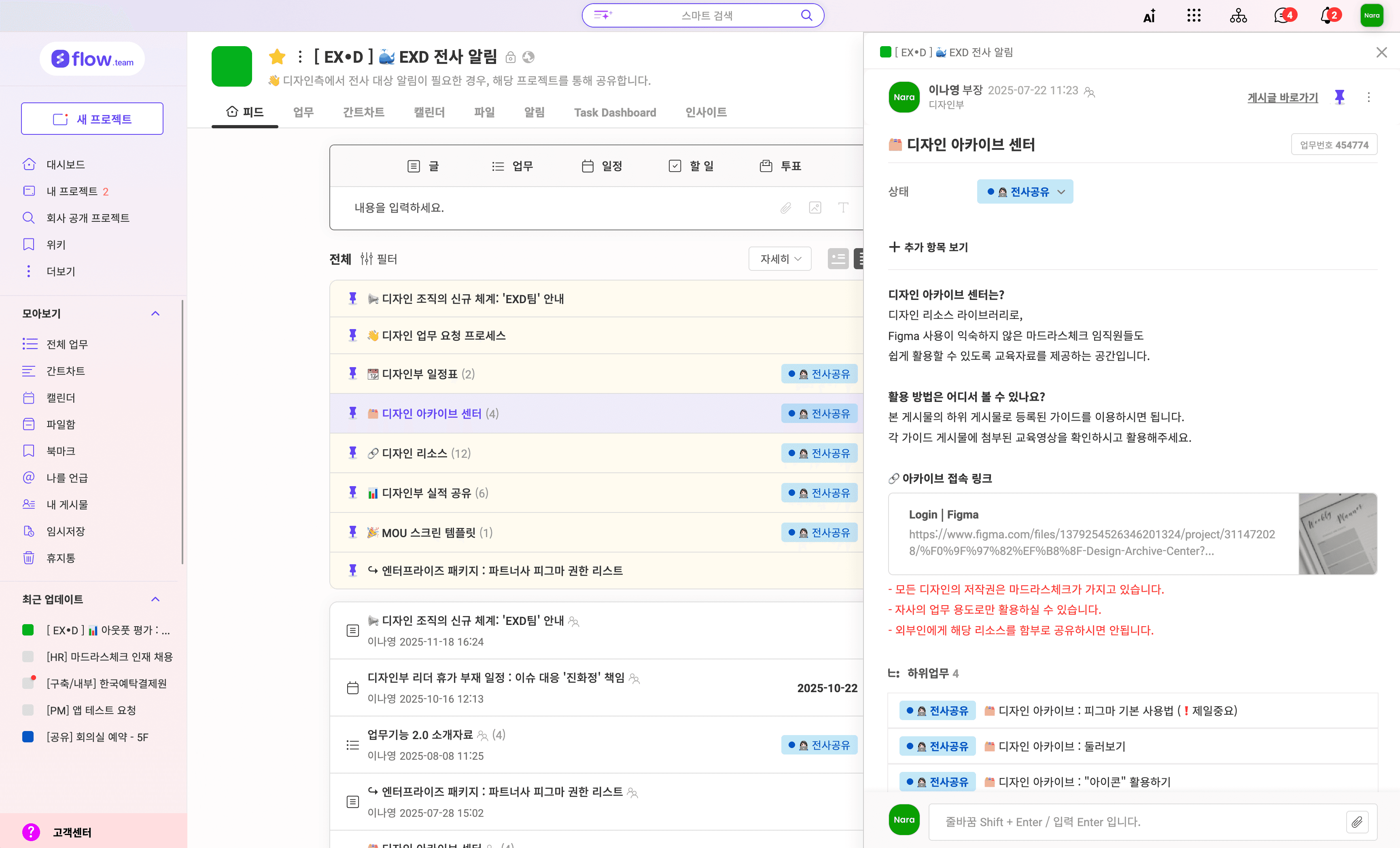 ์ ์ฌ ๋์์ ์ค์ํ ๋์์ธ ๋ฆฌ์์ค ๊ณต์ง๋ฅผ ํ ๊ณณ์์ ๊ด๋ฆฌํ๊ธฐ ์ํด, ๋์์ธํ์ ์ ์ฌ ๊ณต์ง ์ ์ฉ ํ๋ก์ ํธ๋ฅผ ๊ตฌ์ถํ์ต๋๋ค. ์ด ํ๋ก์ ํธ๋ ๋์์ธํ์ด ์ด์ํ์ง๋ง, ๊ทธ ์์ ์ฌ๋ผ์ค๋ ๋ชจ๋ ๊ฒ์๋ฌผ์ ํ์ฌ ์ ์ฒด ์ง์์ด ํ์ธํ๋ ๊ณต์ง ์ฑ๋์
