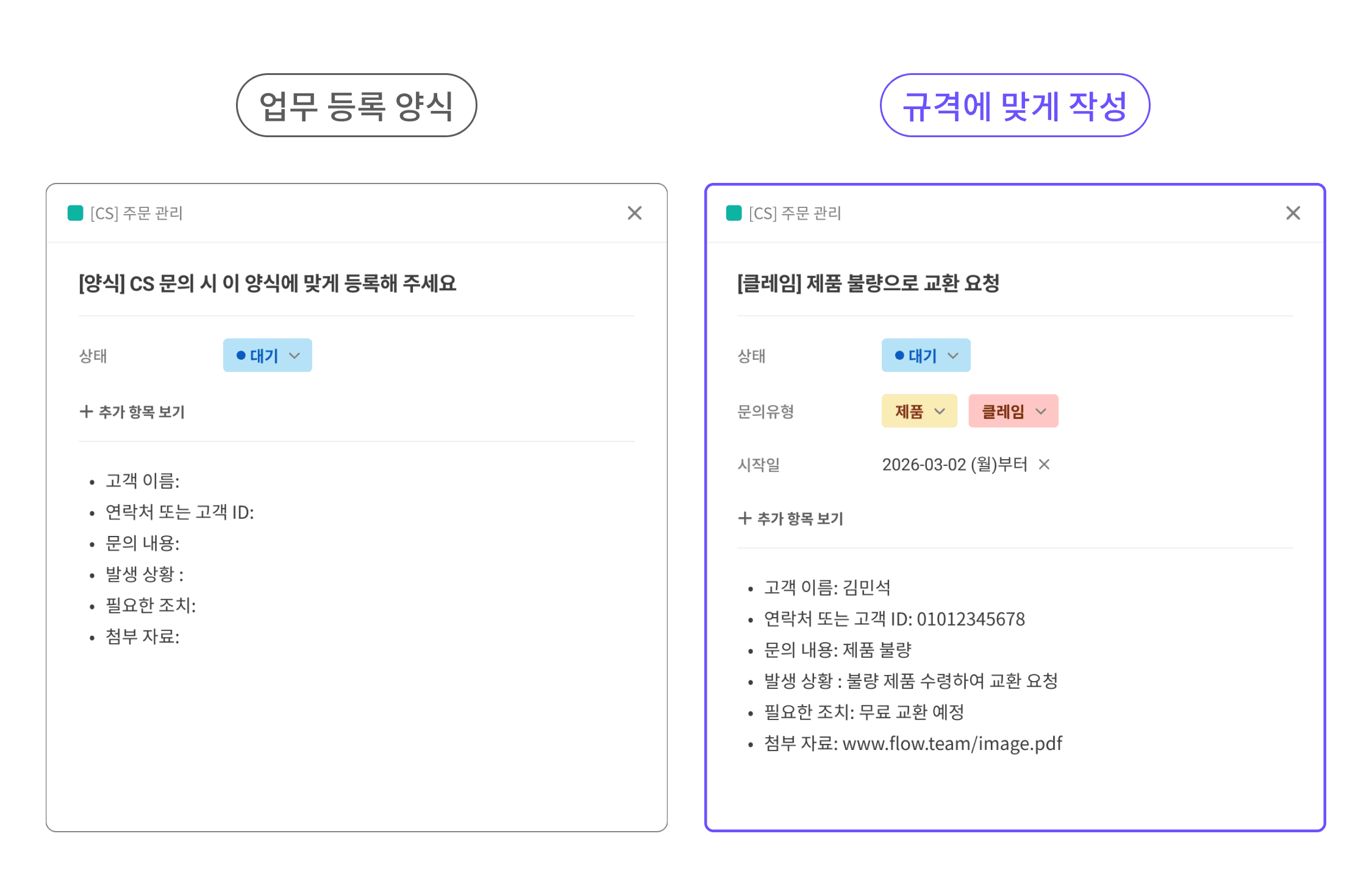 ์๋ฅผ ๋ค์ด, CS ๋ฌธ์๋ฅผ ๊ด๋ฆฌํ๋ ํ๋ก์ ํธ๋ผ๋ฉด ์๋ ํญ๋ชฉ์ด ๊ธฐ๋ณธ์ด ๋ฉ๋๋ค.